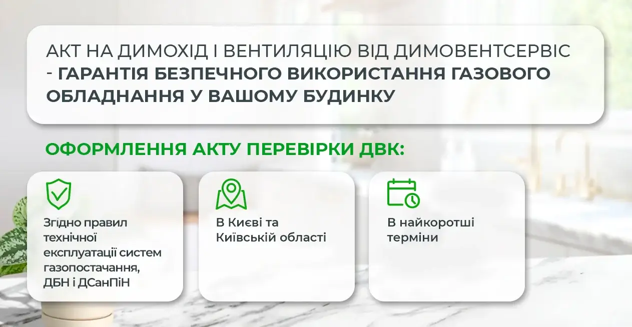 | Акти ДВК | Перевірка та оформлення документації | Акт пічника, акт обстеження | Житловий фонд, бізнес | Відповідно до Наказу №402 |