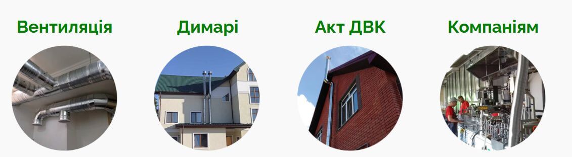 Компанія займається повним спектром робіт — від обстеження димових та вентиляційних каналів до їх ремонту, чищення, гільзування, монтажу вентиляційних систем, установлення кондиціонерів та подальшого обслуговування. Крім цього, виконується паспортизація та оформлення актів ДВК відповідно до вимог нормативної документації. Послуги доступні як для приватних клієнтів, так і для бізнесу, включаючи підприємства, ресторани, школи, дитячі садки, ферми та будь-які об’єкти, де вентиляція та димоходи є частиною безпеки та технологічного процесу.