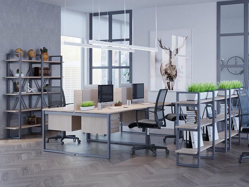 | Офісні меблі Лофт | Економ-клас | 16 мм | Стилізація під industrial, мінімалізм, поєднання текстури дерева та чорного металу. |