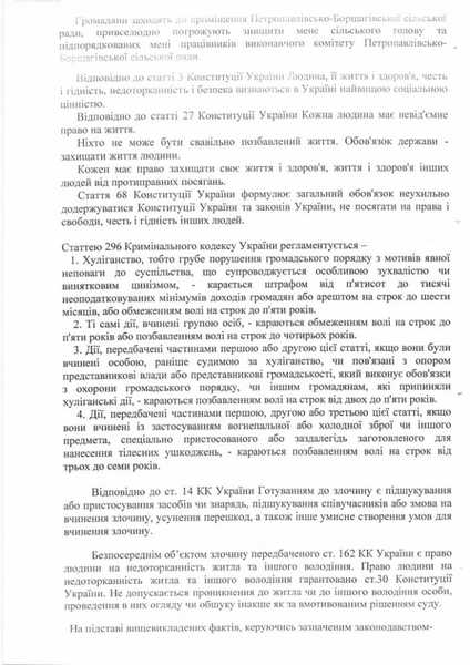 – журналист Валентина Аксенова, «активисты» Людмила Король, Людмила Котенко, Руслан Шишко, Светлана Смовженко, которые организовывают стихийные собрания жителей и призывают к насилию в отношении сельского головы и чиновников сельсовета