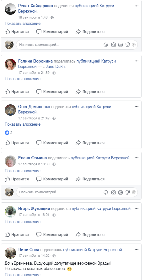 17.09.2017 року у соцмережі “facebook” з`явилася публікація, автором якої є Катруся Бережная: